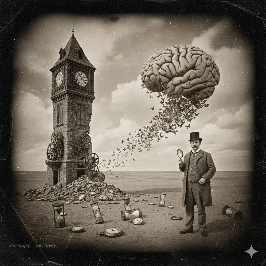 Entropy acts on machines through time. Time is the mechanism of degradation. Time is the variable that converts specification into deviation.
